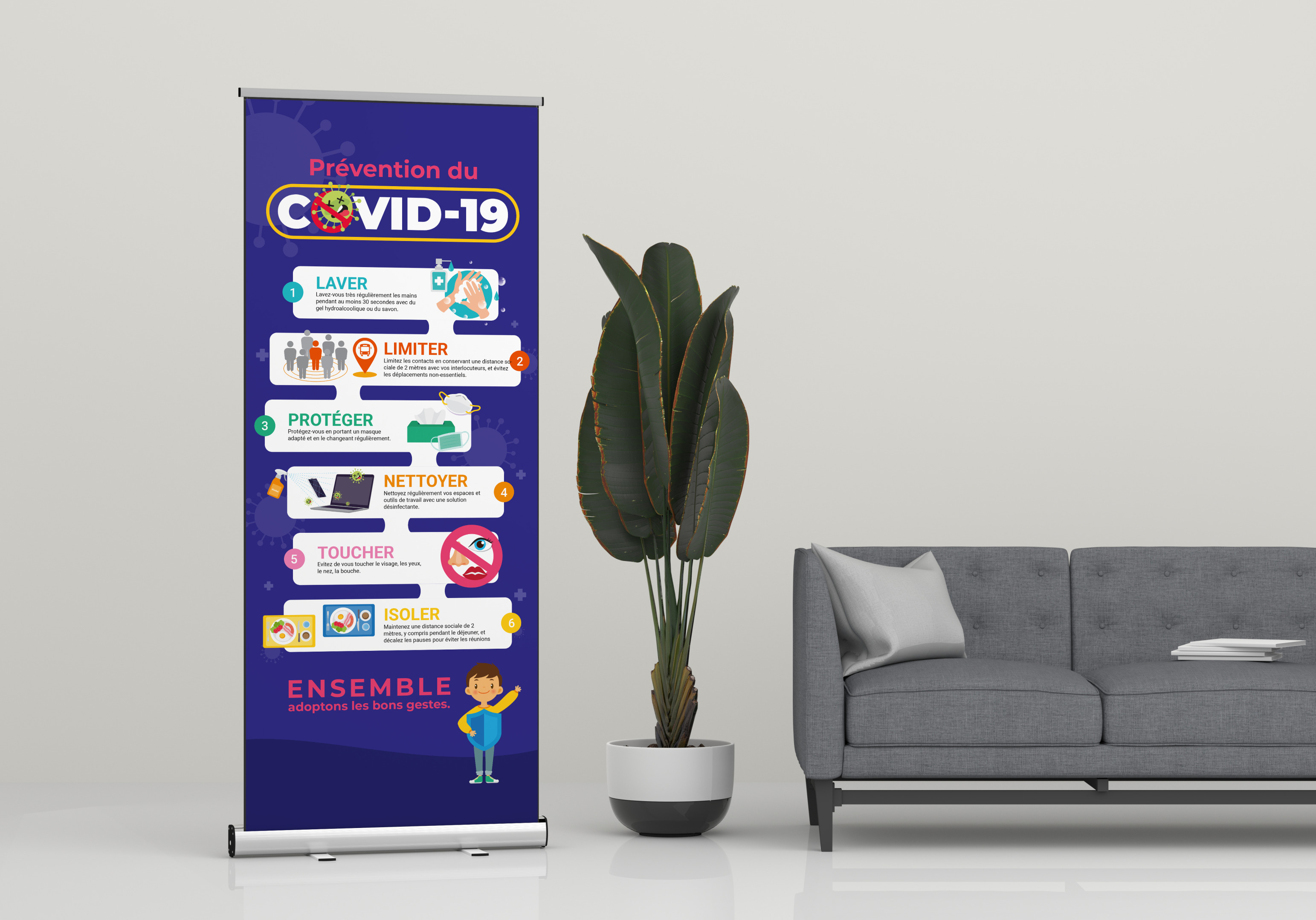 Roll-up gestes barrières COVID