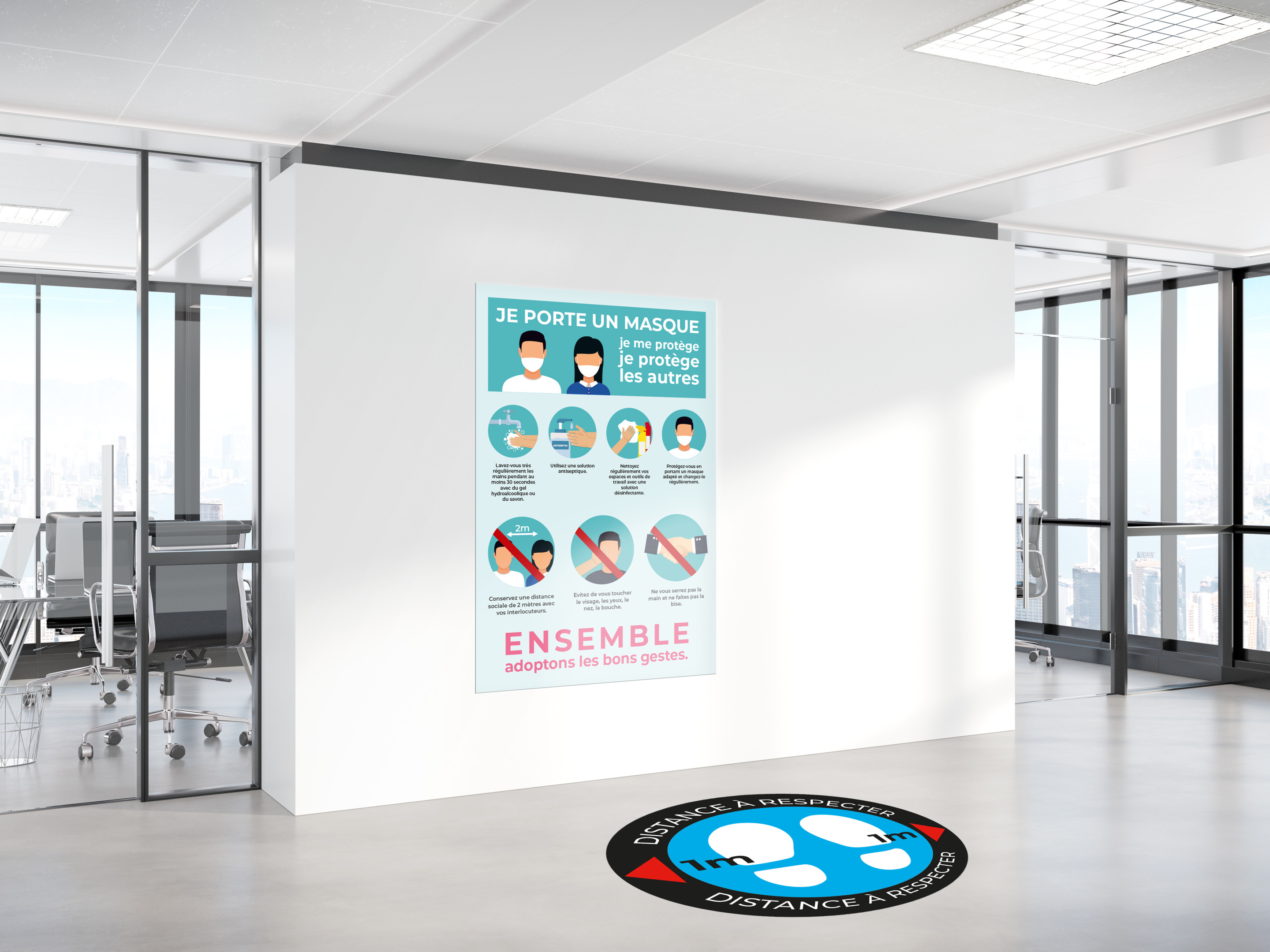 Avec cet adhésif, qui permet de se coller sur le sol, vous pouvez faire respecter les distances de sécurité dans votre entreprise ou boutique.